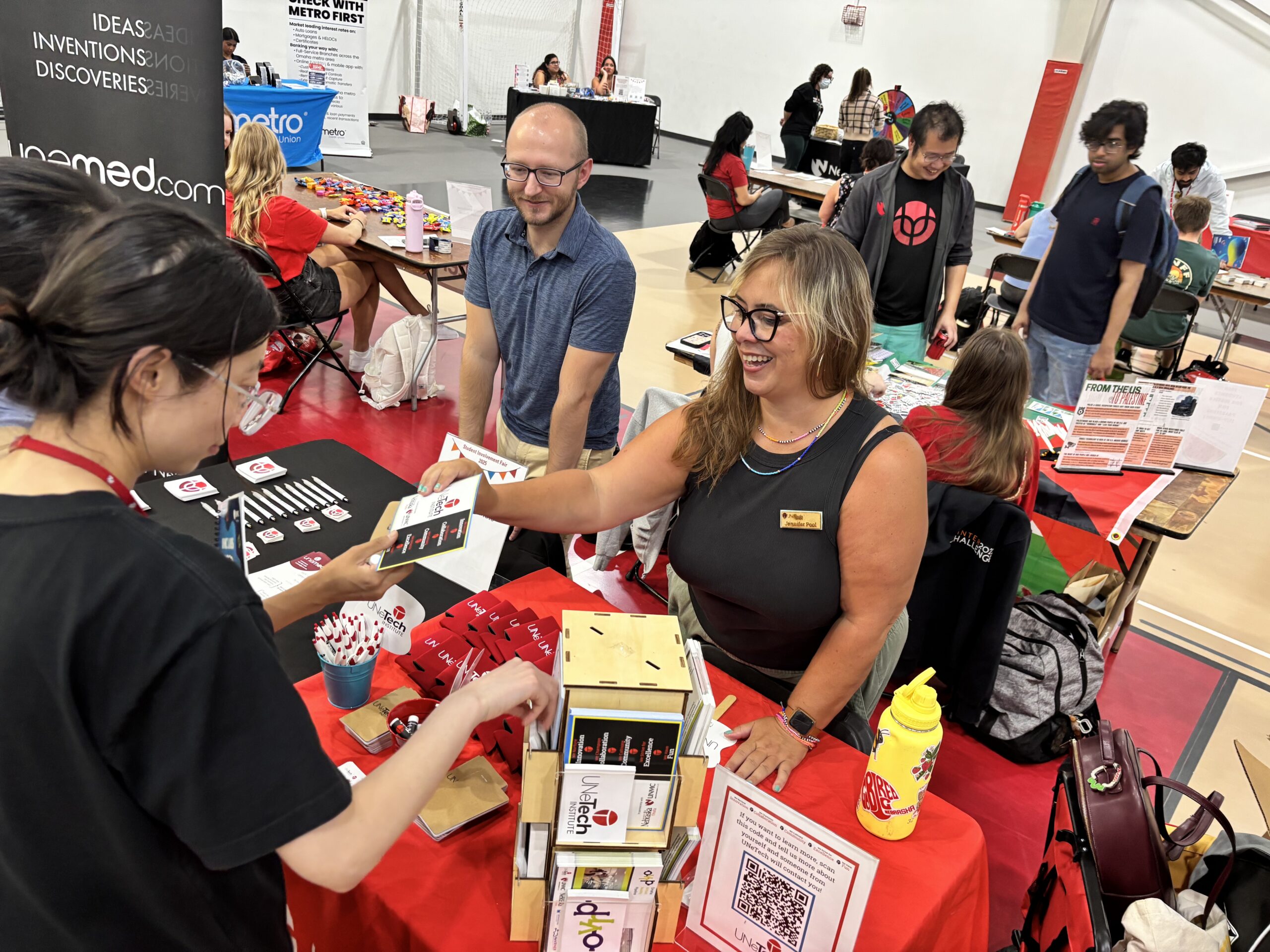 Jennifer Pool (right) and UNeMed’s Nate Hatch (left) at the UNMC Student Involvement Fair, August 2025.
