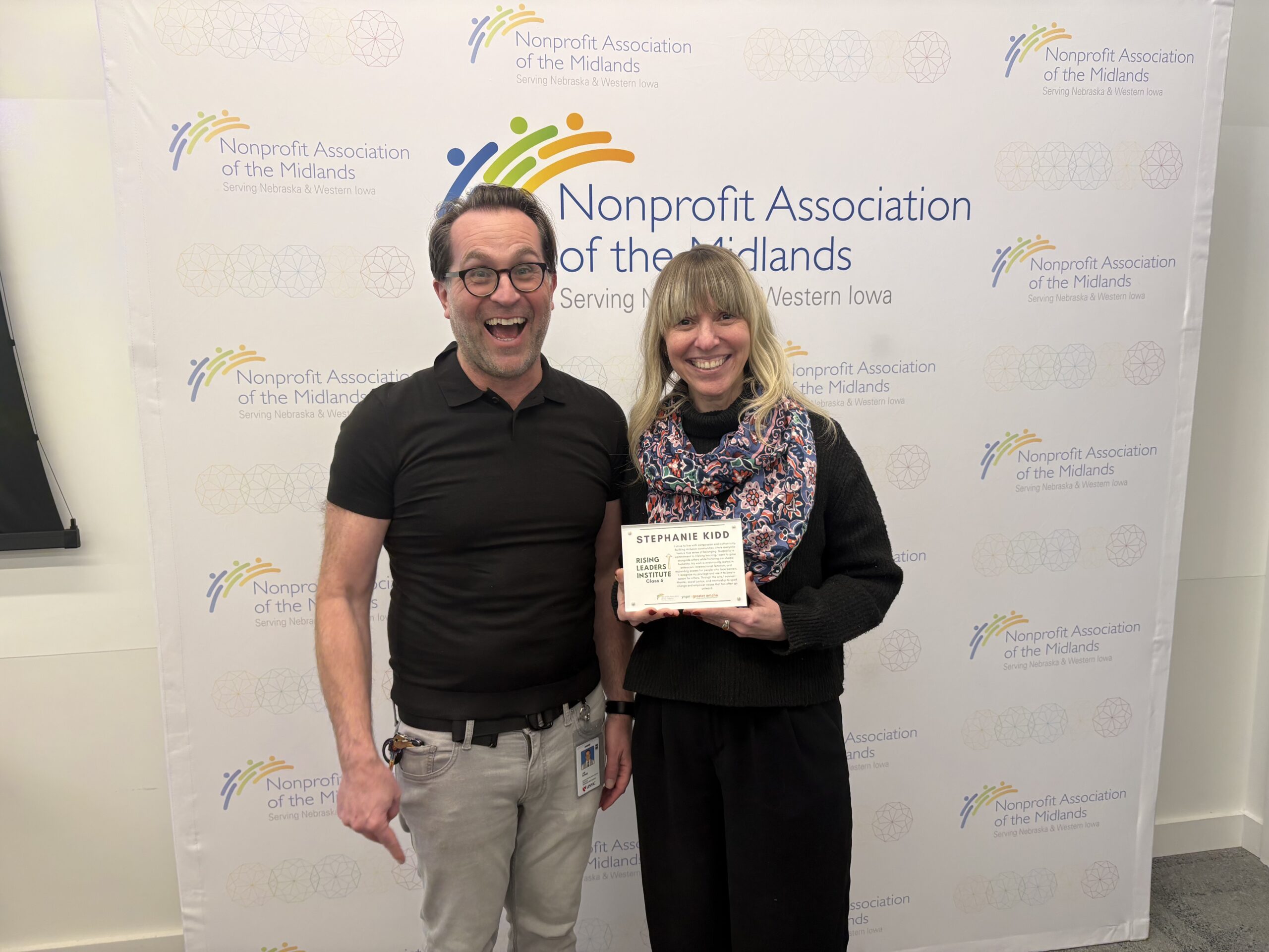 Joe Runge and Stephanie Kidd at her graduation from the Nonprofit Association of the Midlands Rising Leaders Institute, December 2025.