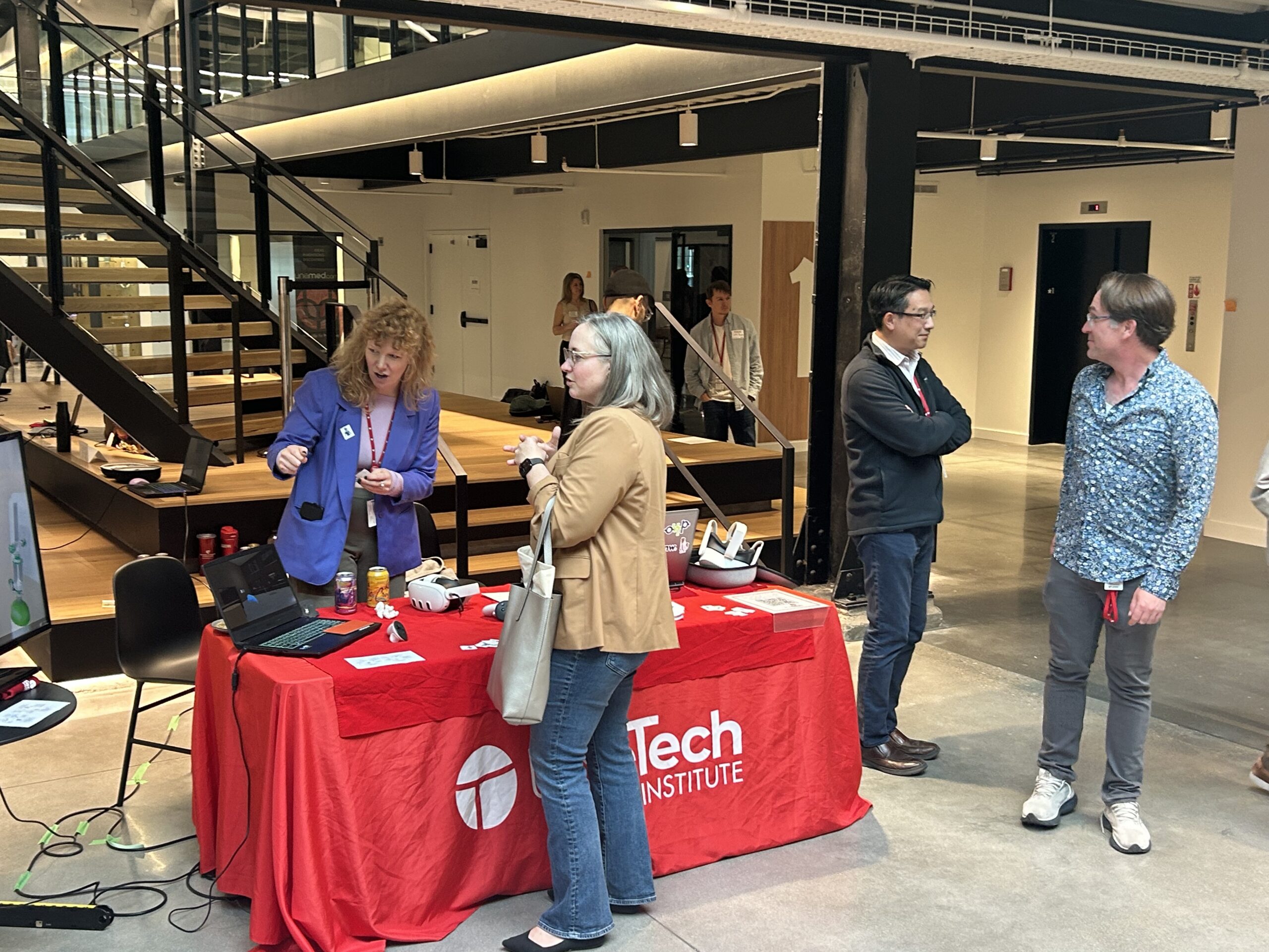Anna Johnston, left, and Joe Runge, right, at the UNeTech table at the Midway of Innovation Catalyst Building SPN Startup Week, October 2025.